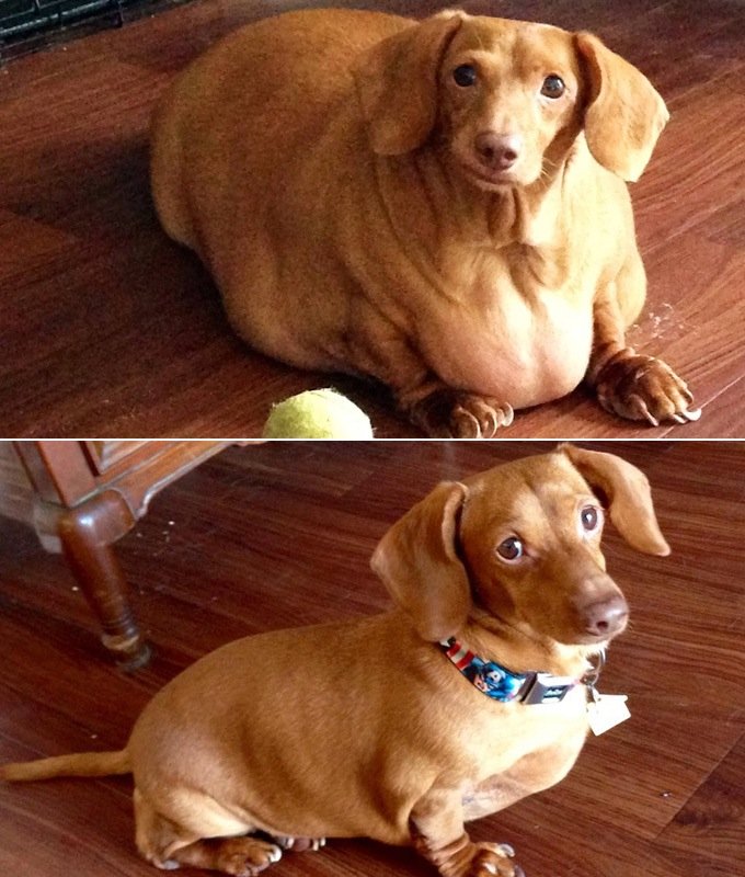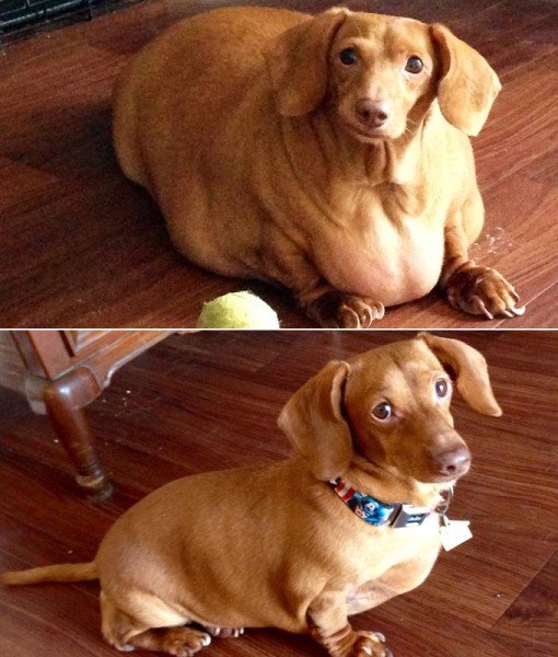 Dennis, a miniature dachshund from Ohio, has lost 44lb (more than 75% of his body weight) after being put on a diet-and-fitness regime by his new owner.