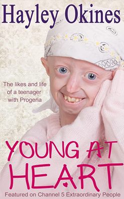 Hayley Okines of Bexhill-on-Sea, England, became a spokesperson and fundraiser for progeria and campaigned for greater awareness throughout her teens. She released her autobiography at the age of 14, entitled Old Before My Time.