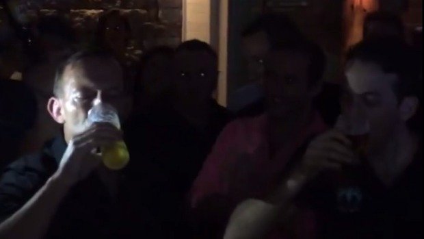 Tony Abbott finished the schooner – around two-thirds of a pint – in a little more than 7 seconds.