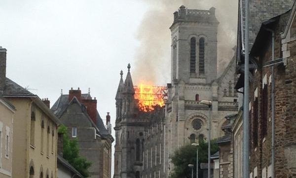 The fire broke out on Monday after morning Mass, with worshippers evacuated from the building, Rev Benoit Bertrand told local media.