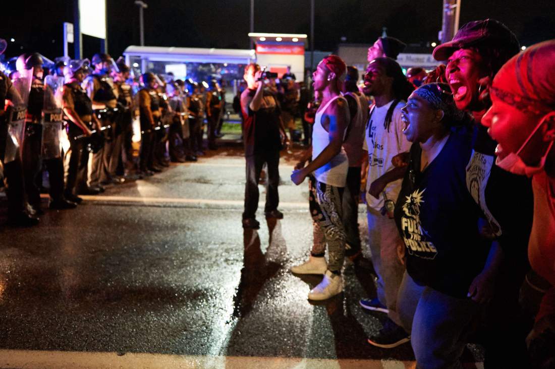 On August 10, police arrested several protesters who blocked a traffic lane on West Florissant Avenue – the site of previous unrest. Witnesses said some people in the crowd threw water bottles at officers but there were no reports of violence.