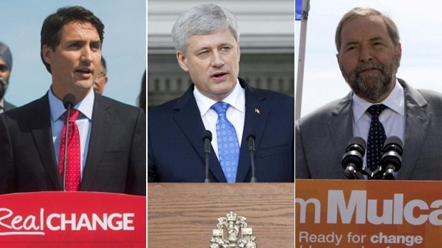 Incumbent Conservative PM Stephen Harper is fighting for a rare fourth term but the frontrunner is Liberal leader Justin Trudeau, son of late PM Pierre Trudeau.