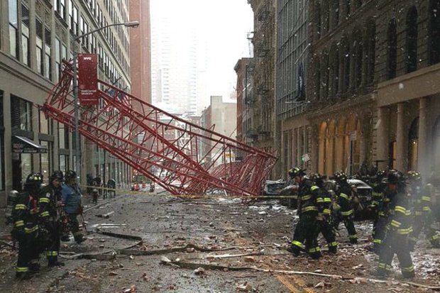 Public transportation is delayed and subway trains are bypassing the area due to the collapsed crane.
