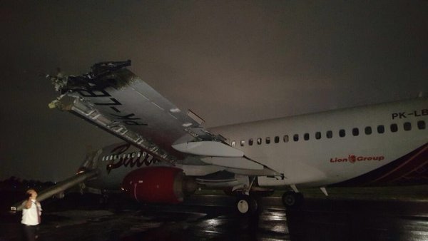 A Batik Air passenger plane was taking off when its wing clipped the tail of a TransNusa aircraft being towed across the runway.