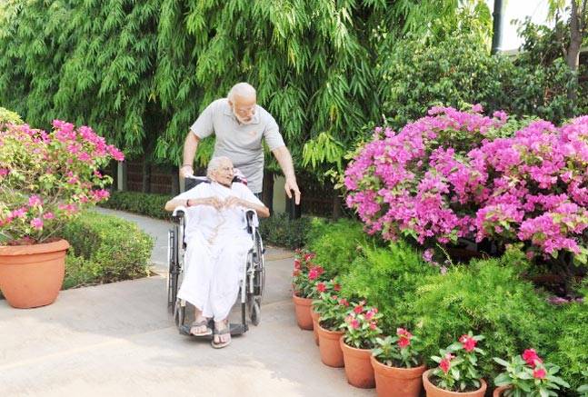 Heeraben Modi, who is in her nineties, lives in her family house in a town in Gujarat, the prime minister’s native state.