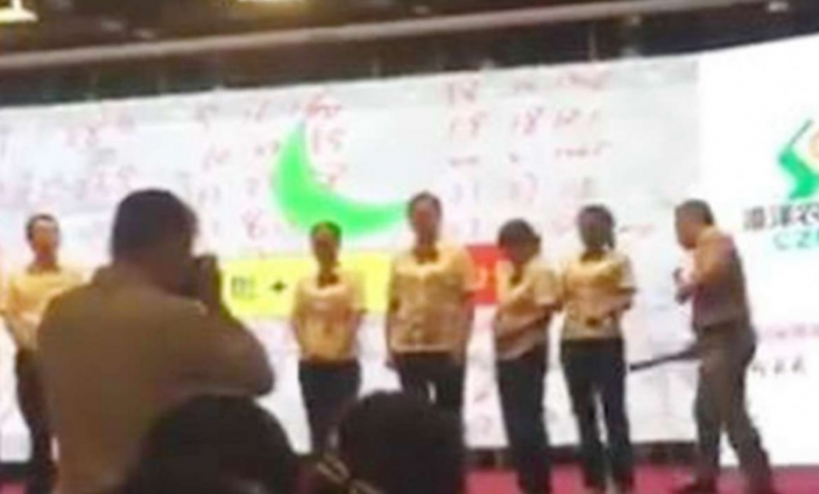 Eight Chinese bank employees have been publicly spanked for poor performance during a training session, a leaked video has shown.