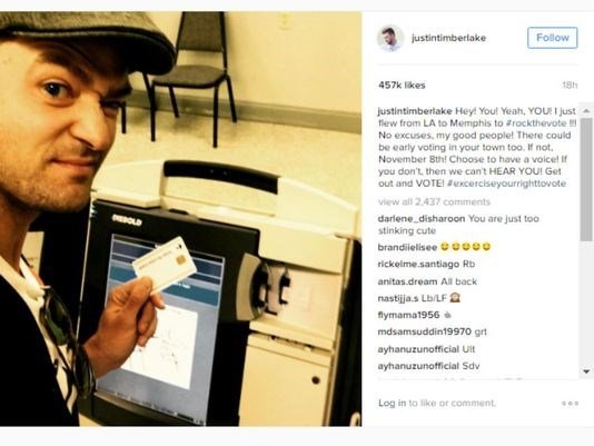 Justin Timberlake uploaded a picture to Instagram of him casting a ballot in Memphis.