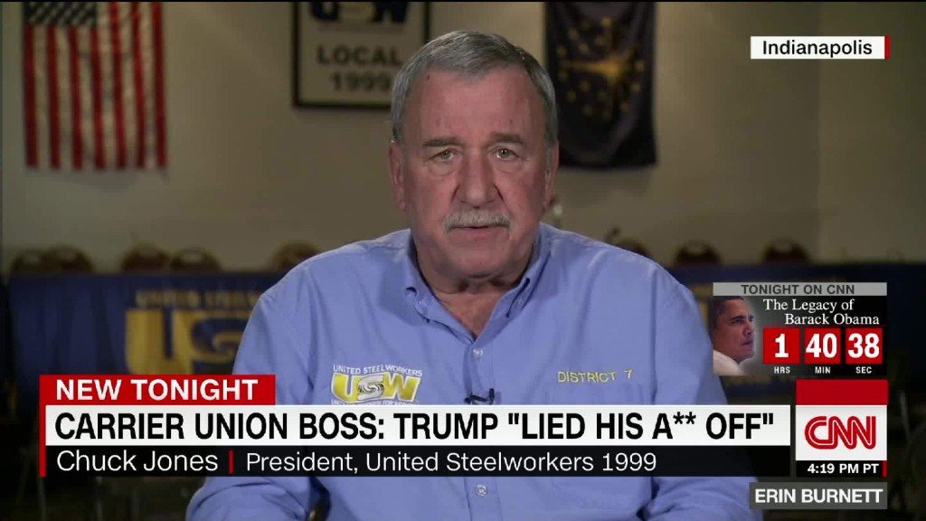 In the CNN interview that preceded the enraged tweet by the president-elect, Chuck Jones disputed Donald Trump’s claim on the job figures because 550 jobs were still going overseas.