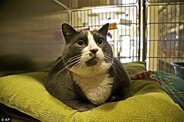 Walter is a seven-year-old grey and white cat, who tips the scales at a whopping 28 pounds.